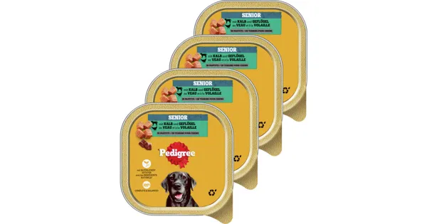 Alleinfuttermittel für ältere Hunde - Tiernahrung PEDIGREE® Pastete in der Schale ist ausgewogen und lecker. Das abgestimmte Verhältnis aus Fleisch und hochwertigen Zutaten sowie Vitaminen und Ballaststoffen garantiert eine artgerechte und ausgewogene Ernährung. Mit unseren PEDIGREE® Feuchtprodukten unterstützen Sie Ihren Hund in seinen täglichen Bedürfnissen. Unsere Produkte enthalten natürliche Ballaststoffe zur Unterstützung einer gesunden Verdauung, Kalzium zur Unterstützung gesunder Knochen, Zink und Sonnenblumenöl mit Omega 6 helfen für ein glänzendes Fell, sowie Vitamin E zur Unterstützung eines gesunden Immunsystems.