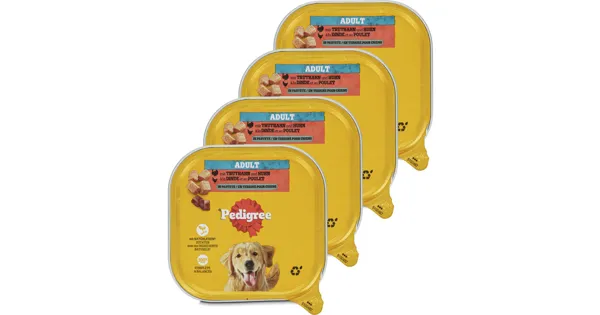 Alleinfuttermittel für ausgewachsene Hunde - Tiernahrung PEDIGREE® Pastete in der Schale ist ausgewogen und lecker. Das abgestimmte Verhältnis aus Fleisch und hochwertigen Zutaten sowie Vitaminen und Ballaststoffen garantiert eine artgerechte und ausgewogene Ernährung. Mit unseren PEDIGREE® Feuchtprodukten unterstützen Sie Ihren Hund in seinen täglichen Bedürfnissen. Unsere Produkte enthalten natürliche Ballaststoffe zur Unterstützung einer gesunden Verdauung, Kalzium zur Unterstützung gesunder Knochen, Zink und Sonnenblumenöl mit Omega 6 helfen für ein glänzendes Fell, sowie Vitamin E zur Unterstützung eines gesunden Immunsystems.
