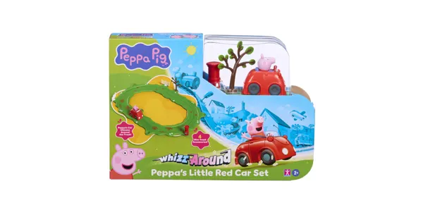 Peppa Pig Whizz Around ist eine aufregende neue Reihe von Peppa Pig-Spielzeugen, die speziell für Kinder im Vorschulalter entwickelt wurde.Inhalt: 8 Schienenteile, kleines rotes Auto, Eisverkäufer, 2 Bäume, Briefkasten, weisser Zaun