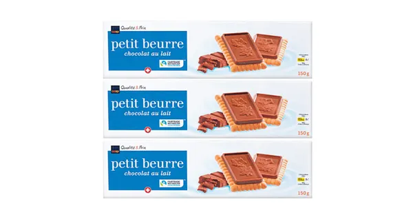 Dauerbackware – Zutaten: Milchschokolade 47% (Zucker, Kakaobutter 14%, VOLLMILCHPULVER, Kakaomasse 5%, MAGERMILCHPULVER, Emulgator [E 322 aus SOJA], Vanille-Extrakt), WEIZENMEHL, Zucker, Stärke, Sonnenblumenöl, eingesottene BUTTER 2,5% (Schweiz), EIER*, Invertzuckersirup, MAGERMILCHPULVER, WEIZENGRIESS, Glucosesirup, Kochsalz, Backtriebmittel (E 503), Aroma. Kann Spuren von DINKEL, GERSTE, HAFER, HASELNUSS, KHORASAN-WEIZEN, MANDELN, ROGGEN, SESAM enthalten. * aus Freilandhaltung. Zutaten: Milchschokolade 47% (Zucker, Kakaobutter 14%, VOLLMILCHPULVER, Kakaomasse 5%, MAGERMILCHPULVER, Emulgator [E 322 aus SOJA], Vanille-Extrakt), WEIZENMEHL, Zucker, Stärke, Sonnenblumenöl, eingesottene BUTTER 2,5% (Schweiz), EIER*, Invertzuckersirup, MAGERMILCHPULVER, WEIZENGRIESS, Glucosesirup, Kochsalz, Backtriebmittel (E 503), Aroma. Kann Spuren von DINKEL, GERSTE, HAFER, HASELNUSS, KHORASAN-WEIZEN, MANDELN, ROGGEN, SESAM enthalten. * aus Freilandhaltung.