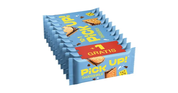 Freue dich auf die unwiderstehliche Kombination aus zarter Milchcreme und knusprigem Keks! Die PiCK UP! Choco&Milch Riegel bieten dir den perfekten Snack für zwischendurch. Jeder Biss vereint den köstlichen Geschmack von Vollmilchschokolade mit einem knusprigen Keks, der dir auf der Zunge zergeht. Perfekt für die Schule, das Büro oder unterwegs – so hast du immer etwas Leckeres zur Hand. Geniesse den Moment – ein PiCK UP! ist immer eine gute Idee.