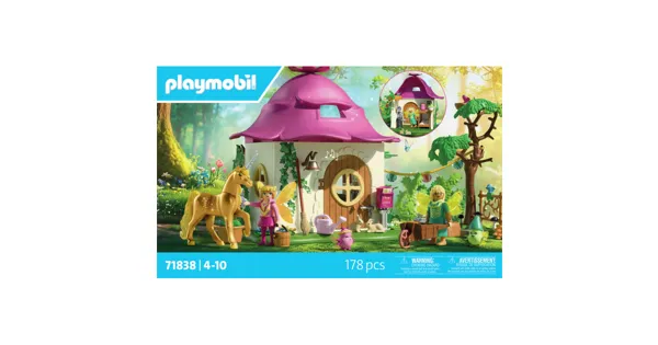 Das detailreich gestaltete Feenhaus mit offenem Stall lädt zu fantasievollen Rollenspielen ein: Die Feen und Joylinge kümmern sich liebevoll um ihr schimmerndes Einhorn, bevor sie sich in den gemütlichen Betten ausruhen und magische Momente erleben. Eigenschaften PLAYMOBIL Magic Unicorns 71838 zauberhafte Atmosphäre voller Fantasie detailliertes Design für kreatives Spielen ab 4 Jahren umfangreiches Zubehör für spannende Pflegeszenen Made in Germany (PLAYMOBIL-Qualität) geeignet ab 4 Jahren Masse und Gewicht Packungsmasse: ca. 46,0 × 28,4 × 9,2 cm Produktmasse: ca. 29,1 × 19,2 × 47,0 cm Gewicht: ca. 939 g Lieferumfang 1 Frau, 1 Mann, 2 Joylinge 1 Einhorn, 1 Schmetterling, 2 Vögel, 2 Hasen 1 Feenhaus mit Bodenplatte, 1 Strohnest, 1 Briefkasten 2 Betten, Küchenutensilien, 1 Kerzenständer, 1Hocker, 1 Bücherstapel 1 Türglocke, 1 Lampe (Lampignon), 1 grosse Blüte, 1 Baum, Pflanzen 3 Pilze, Blüten, 1 Zaunelement, 1 Schubkarre, 1 Baumstumpf 1 Girlande, 2 Steinfelsen, 1 Besen, 1 Giesskanne Einhorn-Pflegezubehör, 2 Körbe, 1 Eimer 1 Blütenkranz, 4 Flügel, 1 Flügelkragen, 2 Manschetten 1 Blatt-Kopfschmuck, 2 kleine Flügelpaare, 1 Kinder-Hut
