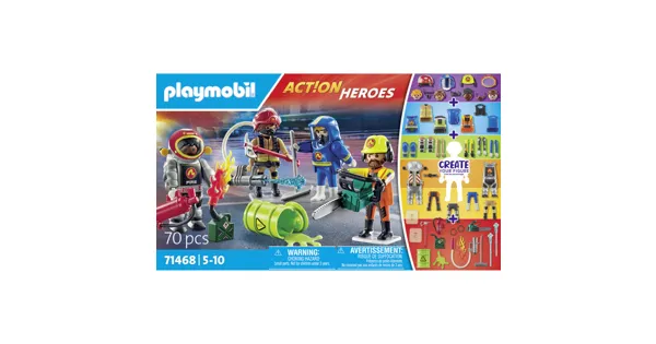 Entdecke die Vielfalt der PLAYMOBIL MyFigures Feuerwehr - kreativ, einzigartig und bunt! Dieses Set bringt mit vier unterschiedlichen Spezialeinheiten der Feuerwehr endlose Möglichkeiten. Die Figuren sind mit abnehmbaren Kopfbedeckungen, Armschienen, Schutzanzug und mehr ausgestattet. Durch Mixen und Matchen der Köpfe, Körper, Arme und Beine entstehen immer neue, fantasievolle Kreationen. Mit authentischem Zubehör wie Feuerwehraxt, Motorsäge, Löschkanone und Silikonpfütze wird jeder Einsatz lebendig. Zwei Standplatten sorgen für sicheren Halt der Figuren, während die tragbare Löschwasser-Spritze und die Löschkanone für actiongeladenen Spielspass sorgen.
