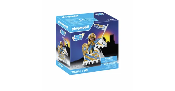 Wir feiern Geburtstag und du bist eingeladen! PLAYMOBIL wird 50. Dieses besondere Ereignis gilt es gebührend zu feiern. Bereits seit 1974 begeistern PLAYMOBIL-Fiuguren Kinder auf der ganzen Welt und regen zu fantasievollen Abenteuern an. Anlässlich des Jubiläums gibt es jetzt den exklusiven PLAYMOBIL Jubiläums-Ritter hoch zu Ross mit goldener Rüstung, Lanze und Schild und natürlich dem typischen PLAYMOBIL-Lächeln. Join the Party und feiere mit uns 50 Jahre Spielgeschichten.