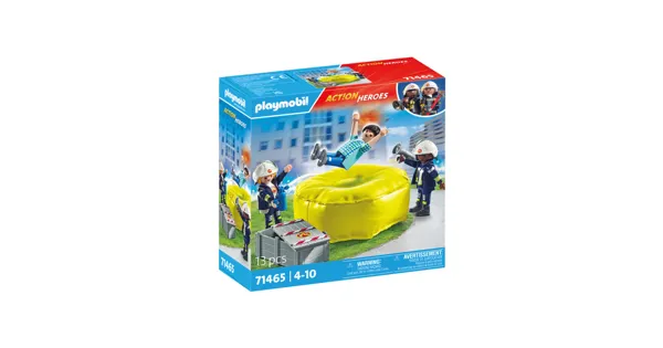 Mit dem neuen PLAYMOBIL-Spielset Feuerwehrleute mit Luftkissen wird Rettung zum Kinderspiel! Zwei mutige Feuerwehrleute haben ein aufblasbares Rettungskissen zum Brandort gebracht, um den Bewohner...
