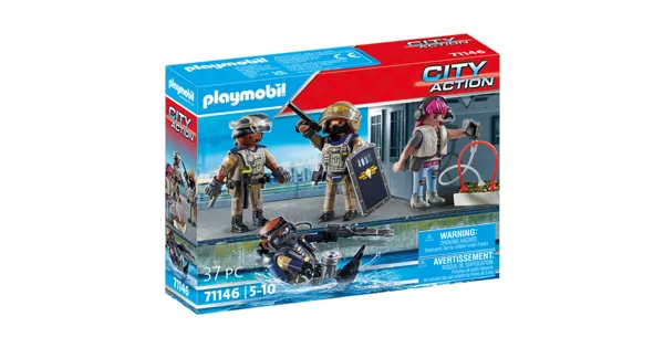 Das Playmobil 71146 SWAT-Figurenset bietet spannende Action für kleine Einsatzkräfte. Mit detailreichen Figuren und Zubehör ist es perfekt für kreative Rollenspiele. Hergestellt aus robustem Material, sorgt es für langlebigen Spielspass.