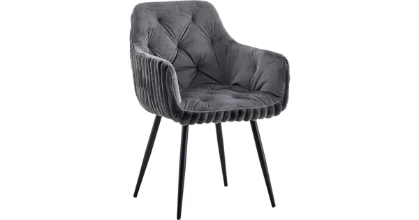 Der Polsterstuhl Fluffy macht seinem Namen alle Ehre. Er ist weich, bequem und überzeugt mit der modernen Farbe Dunkelgrau. Der im Retro-Stil designte Stuhl ist mit einem samtigen Breitcord-Stoff bezogen und hat vier pulverbeschichtete Metallbeine. Die Sitzschale mit Armlehnen verfügt über eine Rundum-Polsterung. Mit einer Sitzhöhe von 47 cm und einer Belastbarkeit von bis zu 120 kg vereint er Stabilität und Bequemlichkeit perfekt. Die Ziernähte verleihen dem Stuhl einen zusätzlichen optischen Reiz. Das Retro-Design erlebt derzeit ein Comeback und hält immer mehr Einzug in die Wohnräume von Designliebhabern.