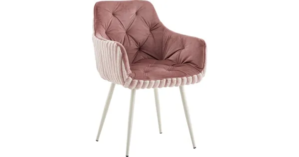 Der Polsterstuhl Fluffy macht seinem Namen alle Ehre. Er ist weich, bequem und überzeugt mit der Trendfarbe Rosa. Der im Retro-Stil designte Stuhl ist mit einem samtigen Breitcord-Stoff bezogen und hat vier pulverbeschichtete Metallbeine. Die Sitzschale mit Armlehnen verfügt über eine Rundum-Polsterung. Mit einer Sitzhöhe von 47 cm und einer Belastbarkeit von bis zu 120 kg vereint er Stabilität und Bequemlichkeit perfekt. Die Ziernähte verleihen dem Stuhl einen zusätzlichen optischen Reiz. Das Retro-Design erlebt derzeit ein Comeback und hält immer mehr Einzug in die Wohnräume von Designliebhabern.