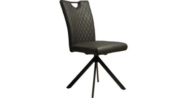 Dezente Eleganz – Der edle Esszimmerstuhl Georgia ist mit einem anthrazitfarbenen Kunstlederbezug ausgestattet und die Rückenfläche ist mit einer dekorativen Steppung versehen. Mit dem praktischen Griff im Rücken kann der Stuhl einfach und leicht hin und her bewegt werden. Der Stuhl ist 360 ° drehbar und vier Metallbeine sorgen für die nötige Stabilität. Das macht ihn zu einem flexiblen Stuhl, der vielseitig einsetzbar ist.