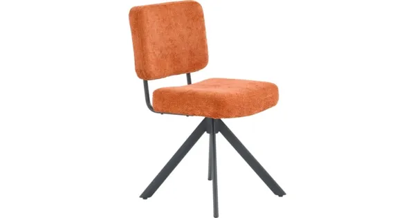 Der Polsterstuhl Gloria in trendigem Orange ist die perfekte Wahl für ein stilbewusstes Wohnambiente. Die Kombination aus weichem Chenille-Stoffbezug und stabilem schwarz lackiertem Metallgestell...