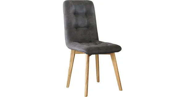 Ergänze deinen Wohnbereich oder dein Kücheninterieur mit unserem Stuhl Porto. Der Esszimmerstuhl aus anthrazitfarbenem Microfaser besitzt eine dezente Knopfheftung an der Rückenlehne und vier Stuhlbeine aus Eichenholz. Die klassische Form und die vier leicht ausgestellten Stuhlbeine bieten einen angenehmen Sitzkomfort mit stabiler Standsicherheit. Dank der lehnenlosen Sitzschale können an einem grossen Tisch problemlos mehrere Stühle nebeneinander platziert werden.