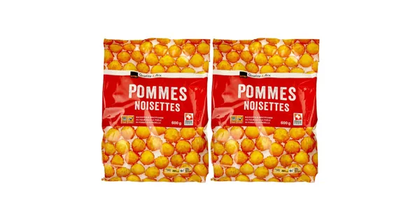 Noisettes aus Kartoffelflocken, vorfrittiert Die Pommes Noisettes von Qualité&Prix sind eine praktische und schnelle Beilage für jede Mahlzeit. Sie sind tiefgefroren und können daher einfach und...