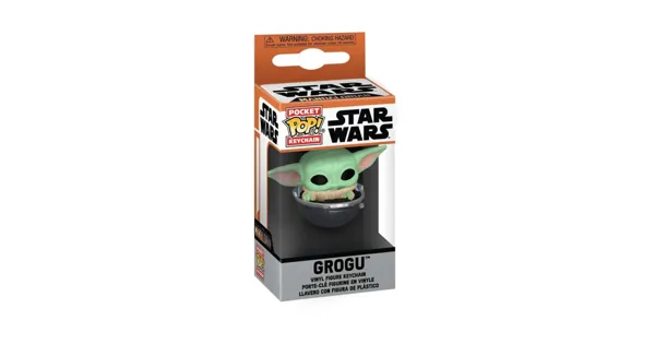 Erkunde die Galaxie neben Pop! Keychain Grogu in seinem schwebenden Kinderwagen! Sammeln Sie diesen entzückenden Findling als nächstes Kopfgeld und helfen Sie ihm, ihn mit seinem Reisebegleiter, dem Mandalorian, in Ihrer The Mandalorian-Kollektion zu vereinen! Der Vinyl-Schlüsselanhänger ist ca.10,2 cm.
