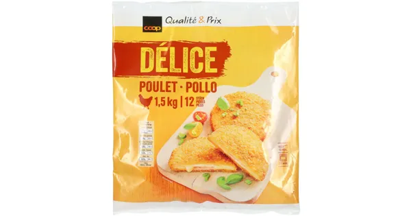 Pouletfleischerzeugnis aus Fleischstücken zusammengefügt mit Käse und Pouletfleischerzeugnis gefüllt, paniert, vorfrittiert – Zutaten: Pouletfleisch 50% (Herkunft: siehe Datierungsfeld), Wasser, KÄSE 9%, Paniermehl (WEIZENMEHL, Kochsalz, Hefe, Gewürze), Pouletfleischerzeugnis gepökelt 7% (Pouletfleisch [Herkunft: siehe Datierungsfeld], Nitritpökelsalz [Kochsalz, Konservierungsstoff [E 250]], Stabilisator [E 450], Antioxidationsmittel [E 301], Gewürzextrakte), Cornflakes (Mais, Zucker, Kochsalz, Emulgator [E 322]), WEIZENMEHL, Rapsöl, Kochsalz jodiert, Stärken (Kartoffel, WEIZEN). Zutaten: Pouletfleisch 50% (Herkunft: siehe Datierungsfeld), Wasser, KÄSE 9%, Paniermehl (WEIZENMEHL, Kochsalz, Hefe, Gewürze), Pouletfleischerzeugnis gepökelt 7% (Pouletfleisch [Herkunft: siehe Datierungsfeld], Nitritpökelsalz [Kochsalz, Konservierungsstoff [E 250]], Stabilisator [E 450], Antioxidationsmittel [E 301], Gewürzextrakte), Cornflakes (Mais, Zucker, Kochsalz, Emulgator [E 322]), WEIZENMEHL, Rapsöl, Kochsalz jodiert, Stärken (Kartoffel, WEIZEN).