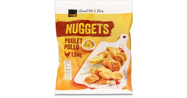 Pouletfleischerzeugnis aus Fleischstücken zusammengefügt, paniert – Zutaten: Pouletfleisch 64% (Herkunft siehe Datierungsfeld), Paniermehl (WEIZENMEHL, Kochsalz, Hefe, Gewürze), Cornflakes (Mais, Zucker, Kochsalz), Rapsöl, WEIZENMEHL, Wasser, Kochsalz jodiert, Stärken (Kartoffel, WEIZEN), Glucose. Zutaten: Pouletfleisch 64% (Herkunft siehe Datierungsfeld), Paniermehl (WEIZENMEHL, Kochsalz, Hefe, Gewürze), Cornflakes (Mais, Zucker, Kochsalz), Rapsöl, WEIZENMEHL, Wasser, Kochsalz jodiert, Stärken (Kartoffel, WEIZEN), Glucose.
