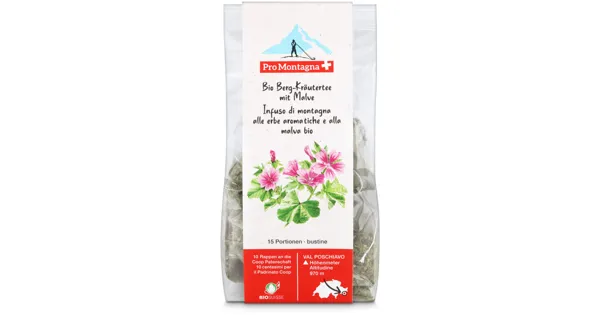 Kräuterteemischung Pro Montagna steht für authentische und qualitativ hochstehende Spezialitäten aus den Schweizer Bergen. So gönnen Sie sich etwas Gutes und unterstützen die Menschen im Berggebiet gleich doppelt: Pro Montagna Produkte schaffen Absatz und mit jedem Kauf fliesst ein Beitrag an die Patenschaft für Berggebiete für dringend notwendige Projekte im Berggebiet (siehe Beitragshöhe unter Eigenschaften). – Zutaten: Malve* 30%, Pfefferminze*, Apfelminze*, Zitronenthymian*, Zitronenmelisse*. Alle landwirtschaftlichen Zutaten stammen aus biologischer Produktion. *aus Berggebiet Herkunft aller Rohstoffe: Schweiz. Zutaten: Malve* 30%, Pfefferminze*, Apfelminze*, Zitronenthymian*, Zitronenmelisse*. Alle landwirtschaftlichen Zutaten stammen aus biologischer Produktion. *aus Berggebiet Herkunft aller Rohstoffe: Schweiz.