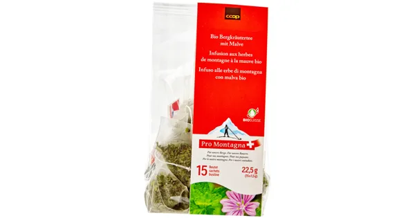 Kräuterteemischung Pro Montagna steht für authentische und qualitativ hochstehende Spezialitäten aus den Schweizer Bergen. So gönnen Sie sich etwas Gutes und unterstützen die Menschen im Berggebiet gleich doppelt: Pro Montagna Produkte schaffen Absatz und mit jedem Kauf fliesst ein Beitrag an die Patenschaft für Berggebiete für dringend notwendige Projekte im Berggebiet (siehe Beitragshöhe unter Eigenschaften). – Zutaten: Malve* 30%, Pfefferminze*, Apfelminze*, Zitronenthymian*, Zitronenmelisse*. Alle landwirtschaftlichen Zutaten stammen aus biologischer Produktion. *aus Berggebiet Herkunft aller Rohstoffe: Schweiz. Zutaten: Malve* 30%, Pfefferminze*, Apfelminze*, Zitronenthymian*, Zitronenmelisse*. Alle landwirtschaftlichen Zutaten stammen aus biologischer Produktion. *aus Berggebiet Herkunft aller Rohstoffe: Schweiz.