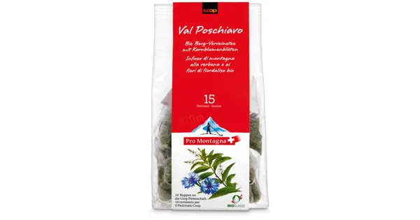 Kräuterteemischung Pro Montagna steht für authentische und qualitativ hochstehende Spezialitäten aus den Schweizer Bergen. So gönnen Sie sich etwas Gutes und unterstützen die Menschen im Berggebiet gleich doppelt: Pro Montagna Produkte schaffen Absatz und mit jedem Kauf fliesst ein Beitrag an die Patenschaft für Berggebiete für dringend notwendige Projekte im Berggebiet (siehe Beitragshöhe unter Eigenschaften). – Zutaten: Wohlriechendes Eisenkraut* (Schweiz), Kornblumen* 3% (Schweiz). Alle landwirtschaftlichen Zutaten stammen aus biologischer Produktion. *aus Berggebiet. Zutaten: Wohlriechendes Eisenkraut* (Schweiz), Kornblumen* 3% (Schweiz). Alle landwirtschaftlichen Zutaten stammen aus biologischer Produktion. *aus Berggebiet.