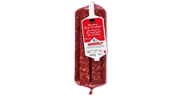 Fleischerzeugnis aus Schweine- und Rindfleisch gepökelt Pro Montagna steht für authentische und qualitativ hochstehende Spezialitäten aus den Schweizer Bergen. So gönnen Sie sich etwas Gutes und unterstützen die Menschen im Berggebiet gleich doppelt: Pro Montagna Produkte schaffen Absatz und mit jedem Kauf fliesst ein Beitrag an die Patenschaft für Berggebiete für dringend notwendige Projekte im Berggebiet (siehe Beitragshöhe unter Eigenschaften). – Zutaten: Pro 100g: Rindfleisch* 61 g (Schweiz), Speck* (Schweiz), Schweinefleisch* 42 g (Schweiz), Schwarten*, Nitritpökelsalz (Kochsalz, Konservierungsstoff [E 250]), Gewürze (mit SENFSAMEN), Maltodextrin, Glucose, Antioxidationsmittel (E 301), Würze. Wursthülle: Rindercollagendarm. *aus Berggebiet. Zutaten: Pro 100g: Rindfleisch* 61 g (Schweiz), Speck* (Schweiz), Schweinefleisch* 42 g (Schweiz), Schwarten*, Nitritpökelsalz (Kochsalz, Konservierungsstoff [E 250]), Gewürze (mit SENFSAMEN), Maltodextrin, Glucose, Antioxidationsmittel (E 301), Würze. Wursthülle: Rindercollagendarm. *aus Berggebiet.