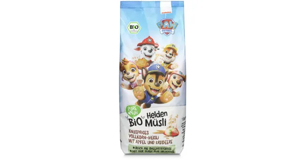 Aktion Bio Vollkorn Knuspermüsli mit getrockneten Äpfeln und gefriergetrockneten Erdbeerstücken – Zutaten: HAFERvollkornflocken* 66%, WEIZENvollkornflocken* 13%,Cornflakes* 6% (Mais*, Trennmittel:...