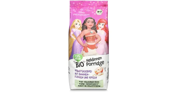 Aktion Bio Hafer- und Dinkelbreizubereitung mit Bananenflocken und Äpfeln – Zutaten: HAFERvollkornflocken* 72%, DINKELvollkornflocken* 10%, Datteln getrocknet* (Datteln*, Reismehl*),...