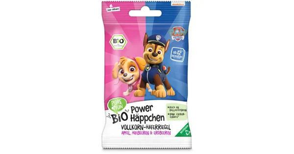 Aktion Bio-Hafer-Riegel Apfel, Himbeeren und Erdbeeren – Zutaten: HAFERflocken* (57.0%), Apfelsaftkonzentrat* (22.0%), Sonnenblumenöl*, Apfelpüreekonzentrat* (4,6%), Kokosraspel*,...