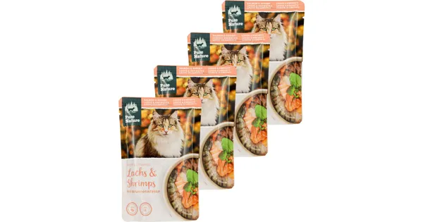 PureNature Katzenfutter in Gelee Lachs + Shrimps 4x 80g