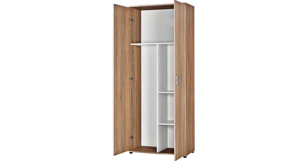 Dank reichlich Stauraum finden Staubsauger, Reinigungsmittel und sonstige Haushaltsutensilien einen Platz zur Aufbewahrung. Die praktischen Einlegeböden helfen Ihnen dabei den Überblick zu bewahren. Durch das schlichte Design des Putzschrankes Kreta, können Sie das Möbel mühelos mit der bereits vorhandenen Einrichtung kombinieren.