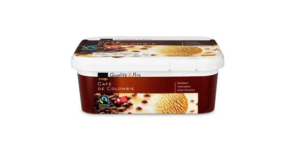 Rahmglace Kaffee Geniessen Sie mit der Rahmglace Café Colombie von Qualité&Prix einen Hauch von Südamerika. Diese Tiefkühl-Delikatesse besticht durch ihren intensiven Kaffeegeschmack und bietet ein hervorragendes Preis-Leistungsverhältnis. Ideal für warme Sommertage oder als Dessert nach einem feinen Essen. – Zutaten: MAGERMILCH (Schweiz), RAHM 25% (Schweiz), konzentrierte MAGERMILCH (Schweiz), Glucose, Glucosesirup, Zucker, Kaffeeextrakt 1,8%, Emulgator (E 471), Stabilisatoren (E 410, E 407). > Fairtrade-Zucker mit Mengenausgleich, Kaffee. Gesamtanteil 25.4% ohne Milchprodukte. Mehr Info: Fairtrade-Code 1028642. www.fairtrademaxhavelaar.ch. Zutaten: MAGERMILCH (Schweiz), RAHM 25% (Schweiz), konzentrierte MAGERMILCH (Schweiz), Glucose, Glucosesirup, Zucker, Kaffeeextrakt 1,8%, Emulgator (E 471), Stabilisatoren (E 410, E 407). > Fairtrade-Zucker mit Mengenausgleich, Kaffee. Gesamtanteil 25.4% ohne Milchprodukte. Mehr Info: Fairtrade-Code 1028642. www.fairtrademaxhavelaar.ch.