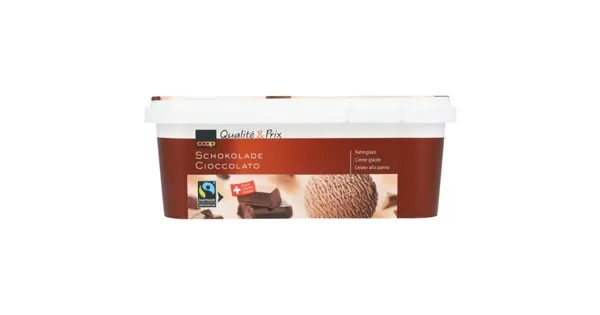 Rahmglace Schokolade Geniessen Sie eine süsse Auszeit mit der Rahmglace Schokolade von Qualité&Prix. Diese Tiefkühl-Delikatesse besticht durch ihren intensiven Schokoladengeschmack und sorgt für eine angenehme Erfrischung. Mit ihrem guten Preis-Leistungsverhältnis ist sie die ideale Wahl für alle Schokoladenliebhaber. – Zutaten: MAGERMILCH (Schweiz), RAHM 20% (Schweiz), konzentrierte MAGERMILCH (Schweiz), Glucosesirup, Glucose, Schokoladecouverture 8% (Zucker, Kakaobutter, Kakaomasse, VOLLMILCHPULVER, eingesottene BUTTER, Emulgator [E 322 aus SOJA], Aroma), Zucker, Schokolade gemahlen 2.7% (Zucker, Kakaomasse, Kakaopulver, Kakaobutter), Kakaopulver 2.6%, Emulgator (E 471), Stabilisatoren (E 410, E 407). > Fairtrade-Zucker und - Kakao mit Mengenausgleich. Gesamtanteil: 45,5% ohne Milchprodukte. Mehr Info: Fairtrade-Code 1028644. www.fairtrademaxhavelaar.ch. Zutaten: MAGERMILCH (Schweiz), RAHM 20% (Schweiz), konzentrierte MAGERMILCH (Schweiz), Glucosesirup, Glucose, Schokoladecouverture 8% (Zucker, Kakaobutter, Kakaomasse, VOLLMILCHPULVER, eingesottene BUTTER, Emulgator [E 322 aus SOJA], Aroma), Zucker, Schokolade gemahlen 2.7% (Zucker, Kakaomasse, Kakaopulver, Kakaobutter), Kakaopulver 2.6%, Emulgator (E 471), Stabilisatoren (E 410, E 407). > Fairtrade-Zucker und - Kakao mit Mengenausgleich. Gesamtanteil: 45,5% ohne Milchprodukte. Mehr Info: Fairtrade-Code 1028644. www.fairtrademaxhavelaar.ch.