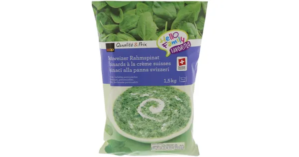 Rahmspinat – Zutaten: Spinat 65%, Wasser, HALBRAHM 10%, MAGERMILCHPULVER, Sonnenblumenöl, Streuwürze, Stärke, MILCHPROTEIN, Kochsalz, Gewürze. Zutaten: Spinat 65%, Wasser, HALBRAHM 10%,...