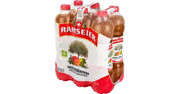 Obstsaft naturtrüb Ramseier Hochstämmer 6x1.5l. Obstsaft. Naturtrüb. Ohne Kohlensäure. Pasteurisiert. Garantiert durch Hochstamm Suisse mit unabhängigen Kontrollen. – Zutaten: Schweizer Apfelsaft (75%) und Schweizer Birnensaft (25%) aus Konzentrat. Pasteurisiert. Vegan. Zutaten: Schweizer Apfelsaft (75%) und Schweizer Birnensaft (25%) aus Konzentrat. Pasteurisiert. Vegan.