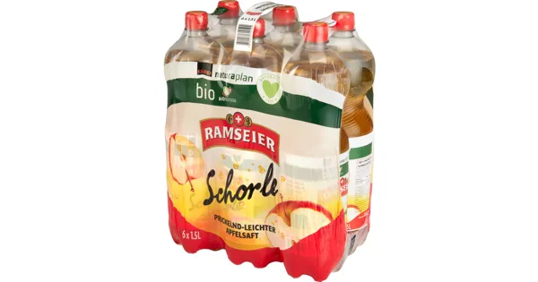 Verdünnter Schweizer Bio-Apfelsaft. Kohlensäurehaltig Die Ramseier Naturaplan Bio Apfelschorle 6x1,5l kombiniert spritziges Mineralwasser mit dem natürlichen Geschmack von Bio-Äpfeln. Dieses...