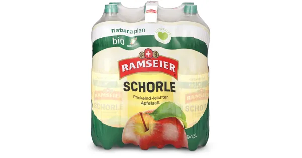 Verdünnter Schweizer Bio-Apfelsaft. Kohlensäurehaltig Die Ramseier Naturaplan Bio Apfelschorle 6x1,5l kombiniert spritziges Mineralwasser mit dem natürlichen Geschmack von Bio-Äpfeln. Dieses...