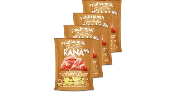 Frische Eierteigwaren mit einer Füllung aus Rohschinken Frische Eierteigwaren mit einer Rohschinken-Füllung. Unter Schutzatmosphäre verpackt. 250 g. No.1 in Italy. – Zutaten: Füllung 36%:...