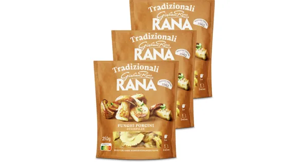 Frische Eierteigwaren mit einer Füllung aus Steinpilzen und Champignons Frische Eierteigwaren mit einer Steinpilzfüllung. Unter geschützter Atmosphäre verpackt. 250 g. No.1 in Italy. – Zutaten: Füllung 53%: Steinpilze 15% (Boletus edulis und weitere seiner Gattung), Paniermehl (WeichWEIZENmehl, Wasser, Kochsalz, Hefe), Pflanzenfasern, Mozzarella KÄSE, Champignons 8% (Agaricus bisporus), Ricotta (MOLKE, MILCH, SAHNE, Kochsalz), Stärken, Sonnenblumenöl, Zwiebeln, Mascarpone KÄSE, MOLKENpulver, Weisswein, natürliche Aromen (enthalten MILCH, WEIZEN, GERSTE), Kochsalz, Petersilie, LAKTOSEKnoblauchpulver, MagerMILCHpulver, schwarzer Pfeffer. Teigwaren 47%: WeichWEIZENmehl, EIER 30%, HartWEIZENgriess Allergene: sieheZutaten in Fettschrift. Hergestellt in einem Werk, das auch KREBSTIERE, FISCHE, SCHALENFRÜCHTE, SELLERIE und WEICHTIERE verwendet. Zutaten: Füllung 53%: Steinpilze 15% (Boletus edulis und weitere seiner Gattung), Paniermehl (WeichWEIZENmehl, Wasser, Kochsalz, Hefe), Pflanzenfasern, Mozzarella KÄSE, Champignons 8% (Agaricus bisporus), Ricotta (MOLKE, MILCH, SAHNE, Kochsalz), Stärken, Sonnenblumenöl, Zwiebeln, Mascarpone KÄSE, MOLKENpulver, Weisswein, natürliche Aromen (enthalten MILCH, WEIZEN, GERSTE), Kochsalz, Petersilie, LAKTOSEKnoblauchpulver, MagerMILCHpulver, schwarzer Pfeffer. Teigwaren 47%: WeichWEIZENmehl, EIER 30%, HartWEIZENgriess Allergene: sieheZutaten in Fettschrift. Hergestellt in einem Werk, das auch KREBSTIERE, FISCHE, SCHALENFRÜCHTE, SELLERIE und WEICHTIERE verwendet.