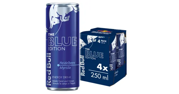 Energy Drink Die Red Bull Blue Edition überzeugt mit ihrem fruchtigen Heidelbeer-Geschmack und der belebenden Wirkung des enthaltenen Koffeins. Das erfrischende Getränk eignet sich ideal für Momente, in denen Konzentration und Energie gefragt sind. Dank der praktischen Dose lässt es sich jederzeit unkompliziert geniessen. – Zutaten: Wasser, Saccharose, Glucose, Säuerungsmittel (Citronensäure), Kohlensäure, Taurin (400mg/ 100ml), Säureregulatoren (Natriumcarbonate, Magnesiumcarbonate), Koffein, Vitamine (Niacin, Pantothensäure, B6, B12), Aromen, Farbstoffe (Anthocyane, Brillantblau FCF). Zutaten: Wasser, Saccharose, Glucose, Säuerungsmittel (Citronensäure), Kohlensäure, Taurin (400mg/ 100ml), Säureregulatoren (Natriumcarbonate, Magnesiumcarbonate), Koffein, Vitamine (Niacin, Pantothensäure, B6, B12), Aromen, Farbstoffe (Anthocyane, Brillantblau FCF).