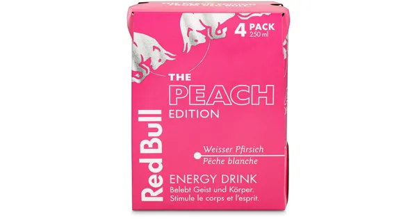 Energy Drink – Zutaten: Wasser, Saccharose, Glucose, Säuerungsmittel (Citronensäure), Kohlensäure, Taurin (400mg/100ml), Säureregulator (Natriumcitrate), Koffein, Vitamine (Niacin, Pantothensäure,...