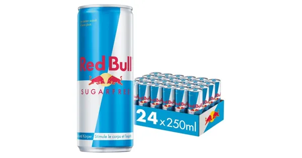 Taurin- und koffeinhaltiges Erfrischungsgetränk mit Süssungsmitteln Red Bull Sugarfree ist Red Bull Energy Drink, aber ohne Zucker. Es ist ein funktionales Getränk mit nur 3 Kalorien pro 100ml. Red Bull Sugarfree wird weltweit von Spitzensportlern, Studenten, in stark fordernden Berufen sowie bei langen Autofahrten geschätzt. Kohlensäurehaltig. Wegen des erhöhten Koffeingehaltes nur in begrenzten Mengen konsumieren. Für Kinder, Schwangere, Stillende und koffeinempfindliche Personen nicht geeignet. Geliefert wird ein Tray mit dem Inhalt von 24x250ml in Dosen. – Zutaten: Wasser, Säuerungsmittel (Citronensäure), Kohlensäure, Taurin (400mg/100ml), Säureregulatoren (Natriumcarbonate, Magnesiumcarbonate), Süssungsmittel (Acesulfam K, Sucralose*), Koffein, Vitamine (Niacin, Pantothensäure, B6, B12), Aromen, Verdickungsmittel (Xanthan), Farbstoffe (Zuckerkulör, Riboflavine). Zutaten: Wasser, Säuerungsmittel (Citronensäure), Kohlensäure, Taurin (400mg/100ml), Säureregulatoren (Natriumcarbonate, Magnesiumcarbonate), Süssungsmittel (Acesulfam K, Sucralose*), Koffein, Vitamine (Niacin, Pantothensäure, B6, B12), Aromen, Verdickungsmittel (Xanthan), Farbstoffe (Zuckerkulör, Riboflavine).