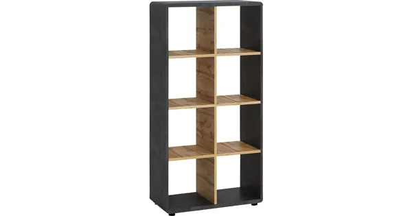 Das Regal Trevi bringt einen gemütlichen Stil in deinem Wohnraum. Die 8 Fächer ermöglichen dem Regal genügend Platz, um deine Dekorationen und persönlichen Gegenstände zu Ordnen. Die Kombination aus Dekor Beton dunkel und Dekor Wotaneiche verleihen dem Möbel einen zeitlosen Charakter.