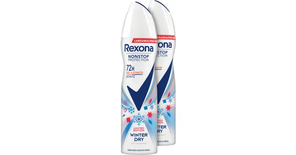 Das Rexona Winter Dry Antitranspirant Deodorant Spray schützt 72 Stunden lang vor Schweiss, Körpergeruch und verschwitzten Achselhöhlen. Das Rexona Antitranspirant verleiht einen zarten blumigen grünen Moschusduft, der an frisch gewaschene Wäsche erinnert.