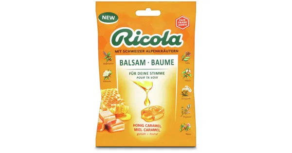 Kräuterbonbons gefüllt – Zutaten: Glukosesirup, Zucker, Glukose-Fruktose-Sirup, Feuchthaltemittel (Glycerin), Honig (5,1%), Kakaobutter, Extrakt (0,7%) aus Goldmelisse, Pfefferminze, Rooibos, Zitronenmelisse und der Ricola 13-Kräutermischung, natürliche Aromen, natürliches Echinacea-Aroma, Salz, Verdickungsmittel (Pektin), Caramelzuckersirup, Emulgator (Lecithine), natürliches Vanillearoma, Menthol, Minzöl, Pfefferminzöl. Zutaten: Glukosesirup, Zucker, Glukose-Fruktose-Sirup, Feuchthaltemittel (Glycerin), Honig (5,1%), Kakaobutter, Extrakt (0,7%) aus Goldmelisse, Pfefferminze, Rooibos, Zitronenmelisse und der Ricola 13-Kräutermischung, natürliche Aromen, natürliches Echinacea-Aroma, Salz, Verdickungsmittel (Pektin), Caramelzuckersirup, Emulgator (Lecithine), natürliches Vanillearoma, Menthol, Minzöl, Pfefferminzöl.