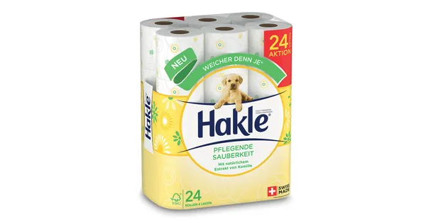 Z.B. Hakle «pflegende Sauberkeit», 4-lagig, 24 x 135 Blatt