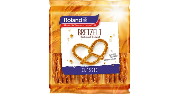 Die beliebten Bretzeli von Roland schmecken knusprig salzig und passen zu jedem Apéro und Fest.