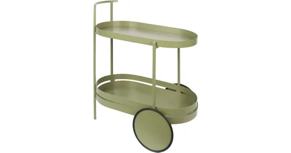 Rollwagen Metall olivgrün oval mit 2 Ablagen
