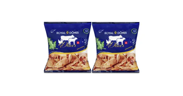 Fleischzubereitung aus Poulet-, Rind- und Kalbfleisch, gewürzt, tiefgekühlt, zum Gekochtessen Das Royal Döner Fleisch gemischt der Marke RROYALDÖNER ist eine hervorragende Wahl für alle Döner-Liebhaber. Dieses Tiefkühlprodukt ermöglicht es Ihnen, jederzeit einen authentischen Döner zu Hause zu geniessen. Mit seiner Mischung aus hochwertigen Fleischsorten bietet es ein unvergleichliches Geschmackserlebnis. – Zutaten: Poulet- 40% (CH), Rind- 35% (CH), Kalbfleisch 18% (CH), Gewürzzubereitung: (Paniermehl (WEIZENMEHL, Speisesalz, Hefe), Gewürze, gekörnte Brühe (Speisesalz, Maltodextrin, Zwiebel, Hefeextrakt, pflanzliches Öl (Sonnenblume), Gewürze, Zucker, Gewürzextrakte), Geschmacksverstärker (E 621), Speisesalz, Stärke, Verdickungsmittel (E 460, E 407), LACTOSE, modifizierte Stärke, Quellmehl (Reis, WEIZEN), Stabilisator (E 450, E 451)), jodiertes Speisesalz, MILCHEIWEISS, Paniermehl (WEIZENMEHL, Kochsalz (nicht jodiert), Hefe), Haferfaser, Erbsenfaser, Verdickungsmittel (E 460), Stärke, Stabilisator (E 450, E 451). Zutaten: Poulet- 40% (CH), Rind- 35% (CH), Kalbfleisch 18% (CH), Gewürzzubereitung: (Paniermehl (WEIZENMEHL, Speisesalz, Hefe), Gewürze, gekörnte Brühe (Speisesalz, Maltodextrin, Zwiebel, Hefeextrakt, pflanzliches Öl (Sonnenblume), Gewürze, Zucker, Gewürzextrakte), Geschmacksverstärker (E 621), Speisesalz, Stärke, Verdickungsmittel (E 460, E 407), LACTOSE, modifizierte Stärke, Quellmehl (Reis, WEIZEN), Stabilisator (E 450, E 451)), jodiertes Speisesalz, MILCHEIWEISS, Paniermehl (WEIZENMEHL, Kochsalz (nicht jodiert), Hefe), Haferfaser, Erbsenfaser, Verdickungsmittel (E 460), Stärke, Stabilisator (E 450, E 451).