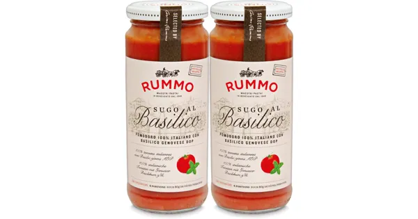 Tomatensauce mit Basilikum Rummo Sugo al Basilico bringt den Geschmack von sonnengereiften Tomaten und frischem Basilikum direkt auf Ihren Teller. Diese reichhaltige Tomatensauce ist ideal für Pasta und verleiht jedem Gericht eine authentisch italienische Note. Erleben Sie mit dieser Sauce die perfekte Kombination aus Einfachheit und Qualität. – Zutaten: Passierte Tomaten 83,10%, Gemüse in variablen Anteilen (Karotten, Zwiebeln, SELLERIE) Sonnenblumenöl, Basilico Genovese g.U. 2%, Zucker, Salz, Zitronensaftkonzentrat. Zutaten: Passierte Tomaten 83,10%, Gemüse in variablen Anteilen (Karotten, Zwiebeln, SELLERIE) Sonnenblumenöl, Basilico Genovese g.U. 2%, Zucker, Salz, Zitronensaftkonzentrat.