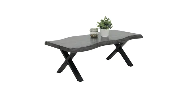 Der Salontisch Pina aus pflegeleichtem MDF ist ein echter Blickfang im Wohnzimmer und verleiht dem Raum Flair. Sein einzigartiges Design mit Baumkantenoptik in Kombination mit dem schwarzen, pulverbeschichteten X-Gestell fügt sich gekonnt in deine bestehende Einrichtung ein. Der Wohnzimmertisch eignet sich perfekt für Zeitschriften, Fernbedienungen, Deko, Bücher oder den morgendlichen Kaffee.
