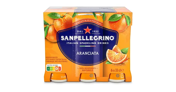 Kohlensäurehaltiges Orangenfruchtsaftgetränk. Mit 16% Orange SanPellegrino Aranciata ist ein erfrischendes und sprudelndes Getränk mit natürlicher Orangennote. – Zutaten: Wasser, Orangensaft aus Konzentrat (16%), Zucker, Kohlendioxid, Zitronensaft konzentriert, Orangenextrakt (0,1%), natürliches Orangenaroma. Herkunft der Orangen: Italien. Zutaten: Wasser, Orangensaft aus Konzentrat (16%), Zucker, Kohlendioxid, Zitronensaft konzentriert, Orangenextrakt (0,1%), natürliches Orangenaroma. Herkunft der Orangen: Italien.