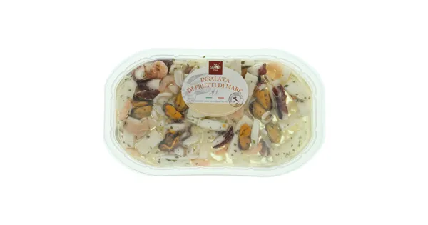Fischereierzeugnis aus Kalmar (Dosidicus gigas, Illex argentinus), Crevetten (Penaeus vannamei), Miesmuscheln (Mytilus galloprovincialis) und Tintenfischen (Octopus cyanea) mariniert, in Sonnenblumenöl – Zutaten: Sonnenblumenöl, KALMAR (gefangen im Südostpazifik, Südwestatlantik, Haken und Langleinen, Schleppnetze), CREVETTEN (in Aquakultur gewonnen in Vietnam), MIESMUSCHELN (in Aquakultur gewonnen in Spanien), TINTENFISCHE (gefangen im Östlichen Indischen Ozean, Haken und Langleinen), Kochsalz, Weinessig, Fructose, Zitronensaft, Petersilie, natürliches Aroma, Säureregulator (E 331), Konservierungsstoff (E 202). Kann Spuren von FISCH, GLUTEN enthalten. Zutaten: Sonnenblumenöl, KALMAR (gefangen im Südostpazifik, Südwestatlantik, Haken und Langleinen, Schleppnetze), CREVETTEN (in Aquakultur gewonnen in Vietnam), MIESMUSCHELN (in Aquakultur gewonnen in Spanien), TINTENFISCHE (gefangen im Östlichen Indischen Ozean, Haken und Langleinen), Kochsalz, Weinessig, Fructose, Zitronensaft, Petersilie, natürliches Aroma, Säureregulator (E 331), Konservierungsstoff (E 202). Kann Spuren von FISCH, GLUTEN enthalten.